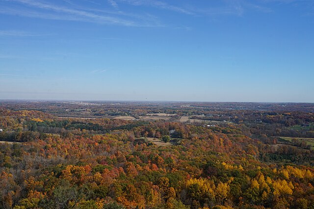 View of the Kettle Moraine landscape from Holy Hill in Washington County, Wisconsin. Photo by Michael Barera (CC BY-SA 4.0).